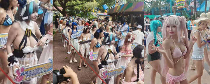 一起湿身战斗?广东长隆水上乐园联动漫展炸裂现场泳装coser尺度不减